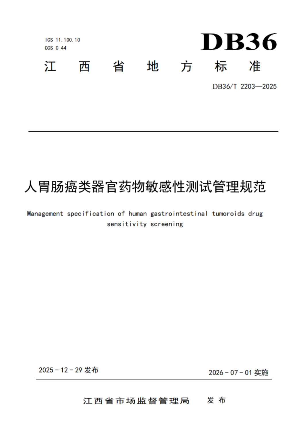 填补省内空白!江西省首个胃肠癌类器官药物敏感性检测标准正式发布