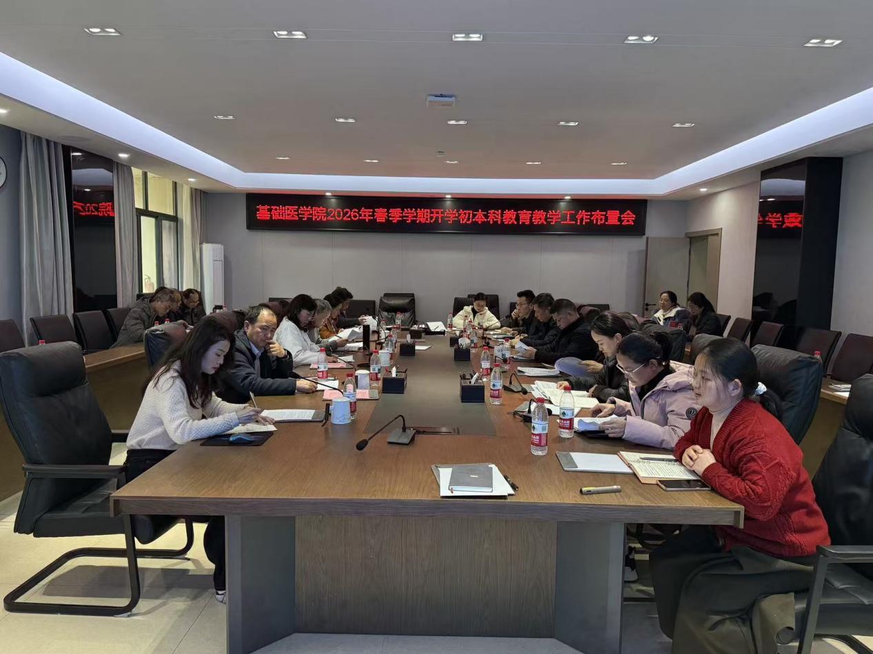3月3日下午,基础医学院召开2026年春季学期本科教育教学工作布置会暨督导工作布置会。学院党委书记、院长、副院长、各教研室主任及教务办全体成员参会,会议由副院长刘琼主持。